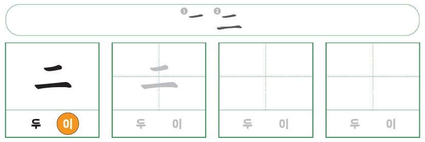 한자몬 웹사이트를 통해 ‘二(두 이)’를 쓰는 과정을 살펴보았어요. 이번에는 연필로도 직접 한자를 써 봐요!