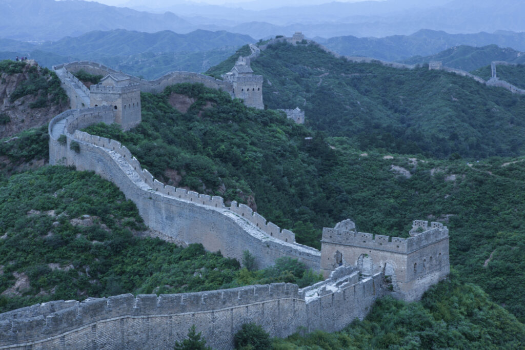 사진 속 만리장성은 어떤 재료로 만들었을 것 같이 생겼나요? 만리장성 사진에서 가장 눈에 띄는 부분은 어디인가요?