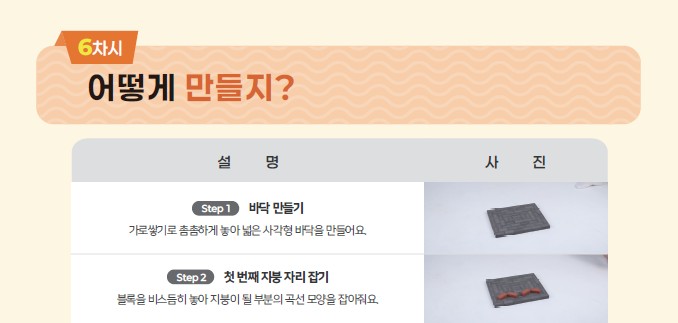 포디블럭 교구가 준비되었다면 다음 페이지의 영상을 플레이 해주세요. 워크지의 ‘어떻게 만들지?’ 페이지를 참고해도 좋아요!