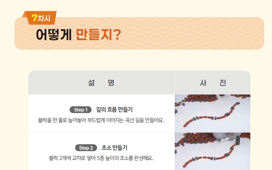 포디블럭 교구가 준비되었다면 다음 페이지의 영상을 플레이 해주세요. 워크지의 ‘어떻게 만들지?’ 페이지를 참고해도 좋아요!