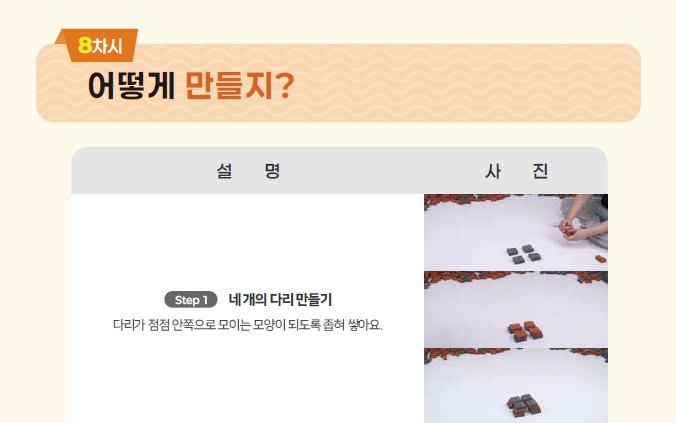 포디블럭 교구가 준비되었다면 다음 페이지의 영상을 플레이 해주세요. 워크지의 ‘어떻게 만들지?’ 페이지를 참고해도 좋아요!