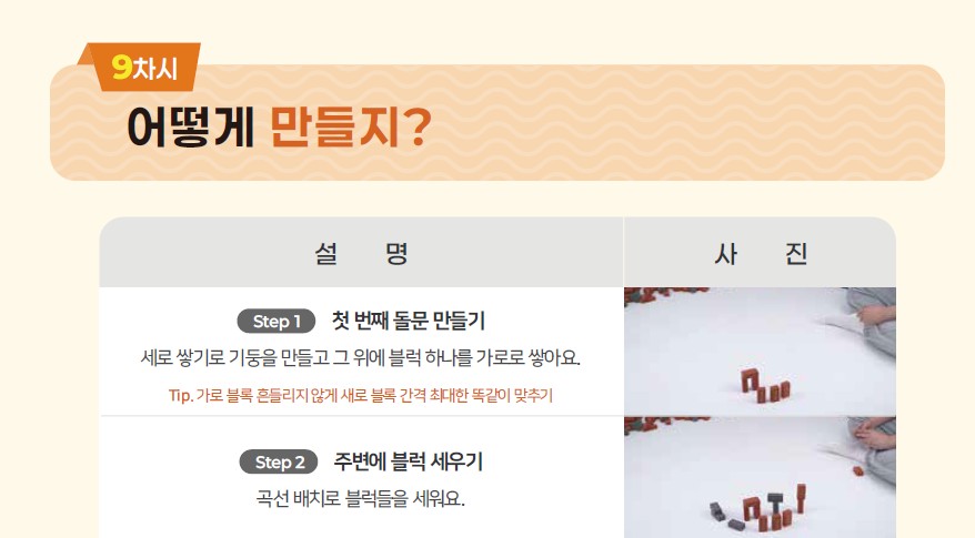 포디블럭 교구가 준비되었다면 다음 페이지의 영상을 플레이 해주세요. 워크지의 ‘어떻게 만들지?’ 페이지를 참고해도 좋아요!