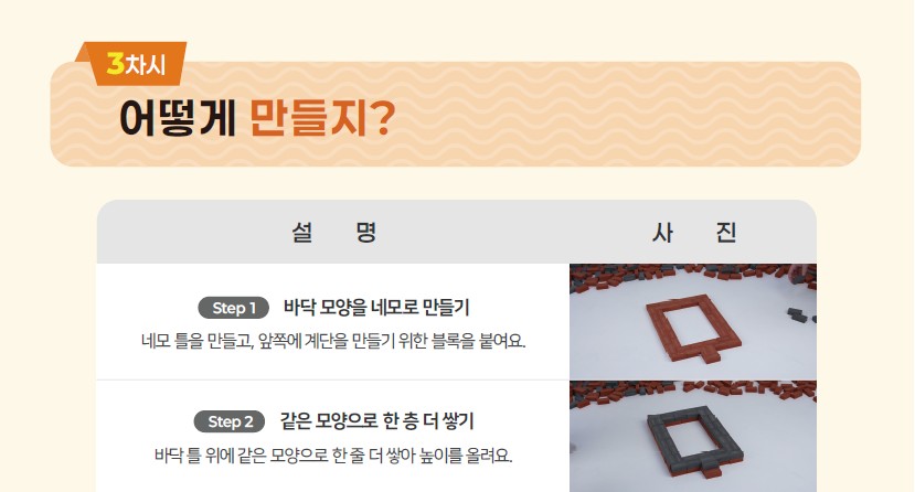 포디블럭 교구가 준비되었다면 다음 페이지의 영상을 플레이 해주세요. 워크지의 ‘어떻게 만들지?’ 페이지를 참고해도 좋아요!